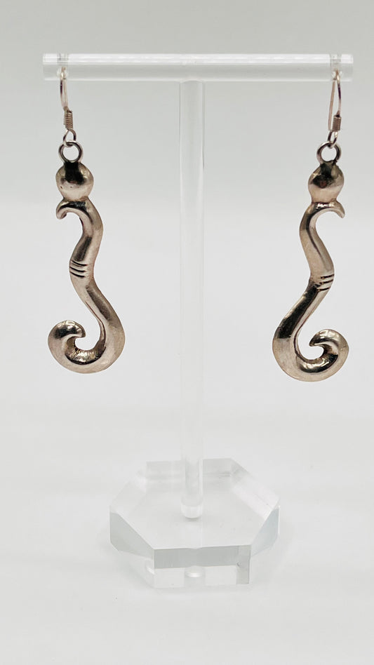 925 Sterling Silver Dangle Hook Earrings Gothic Tribal Swirl Hopi Vintage