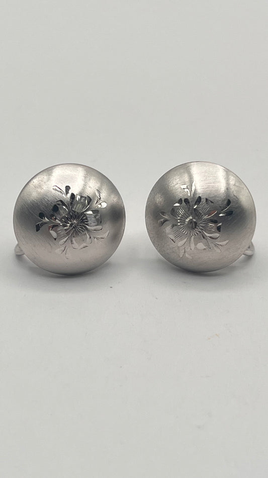 Vintage Designer A&Z 925 Sterling Silver Earrings Round Diamond Cut Floral Screw Back