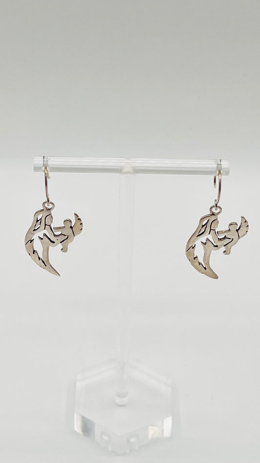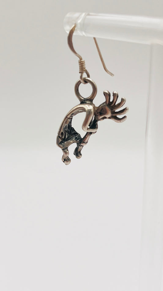 Vintage 925 Sterling Silver Dangle Dancing Kokopelli Earrings