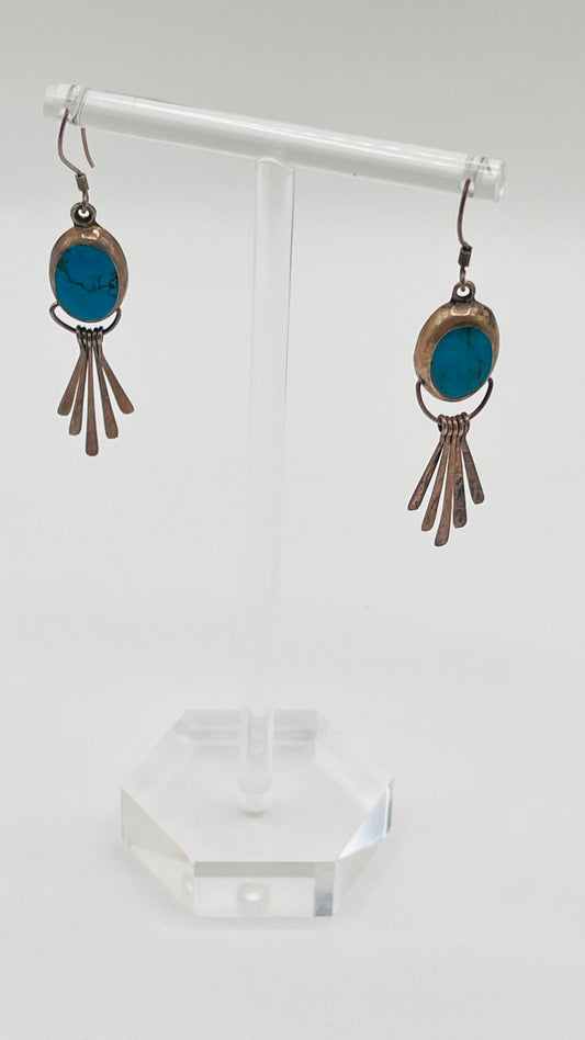 Vintage Southwestern Navajo 925 Sterling Silver Dangle Earrings Cabochon Turquoise Stone