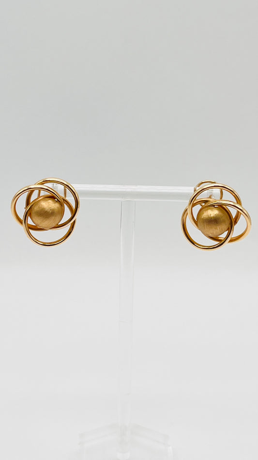 Authentic 10K Solid Gold Earrings Omega Back Clasp Interlocking Circles Brushed Ball Bead