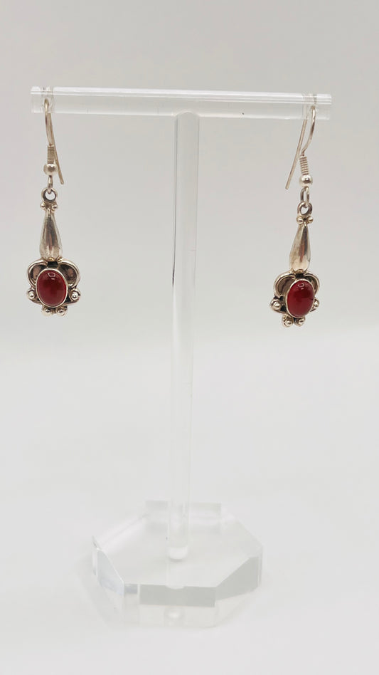 Vintage 925 Sterling Silver Dangle Hook Earrings Red Carnelian Stone