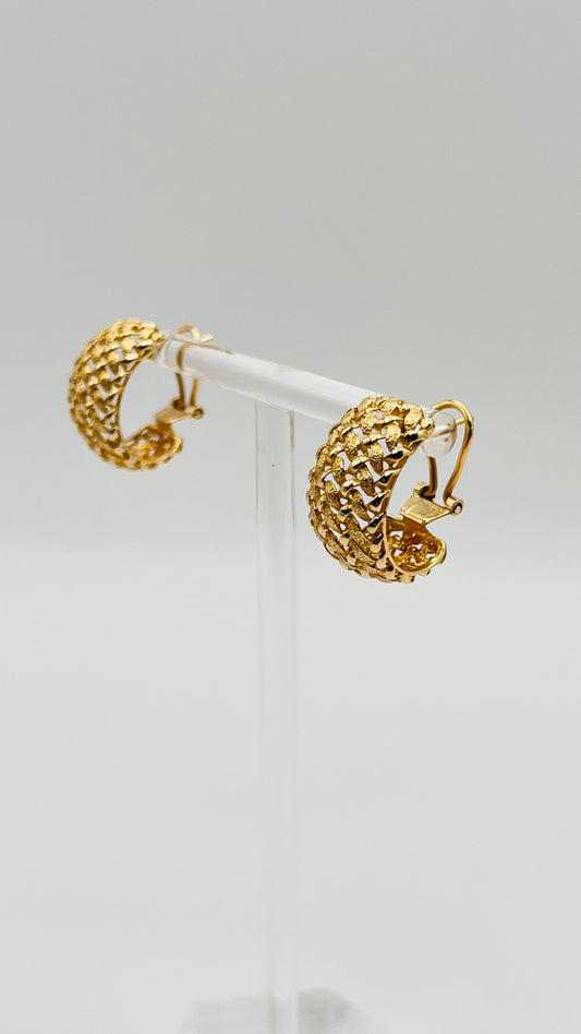 CJL Designer Vintage 14K Solid Gold Earrings Sewed Braids Basket Weave Half Hoop Omega Back