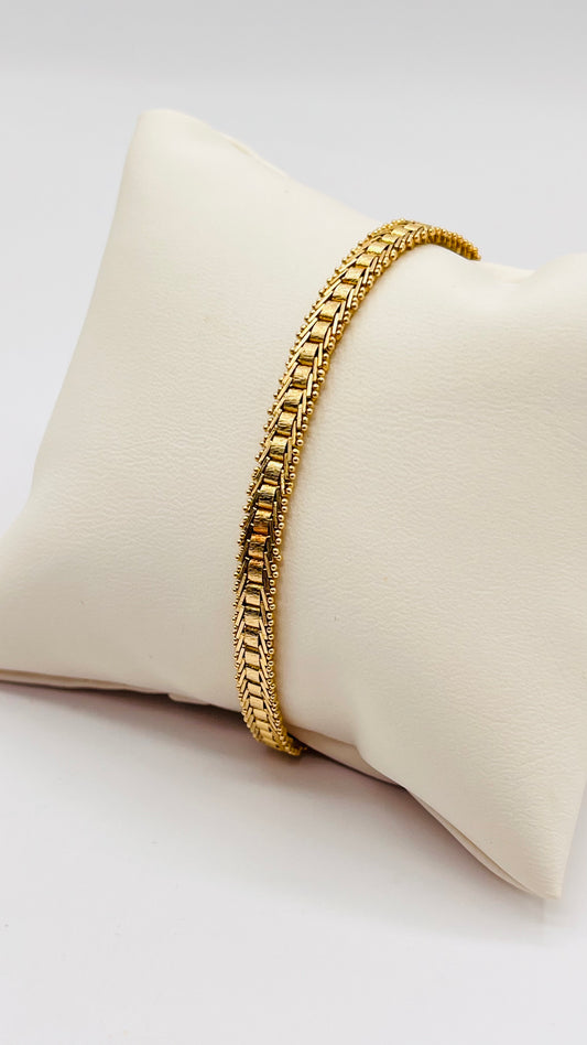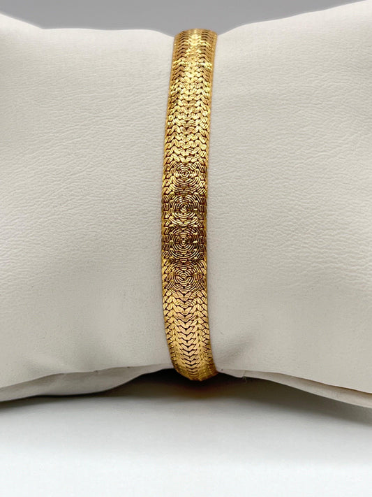 14K Solid Yellow Gold Textured Mesh Snake Woven Unique Vintage Chain Bracelet