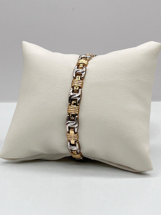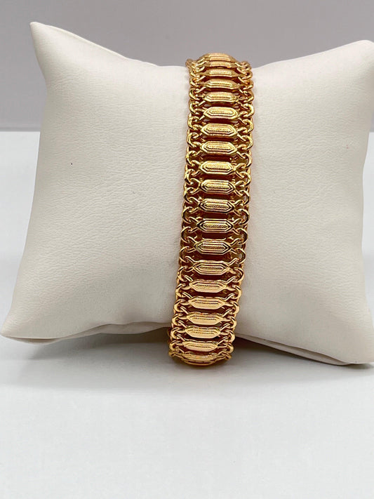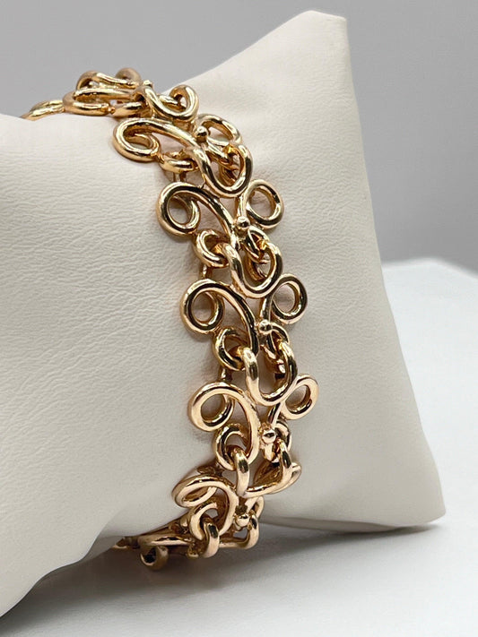 Vintage Unique 14K Solid Yellow Gold Italian Fancy Link Chunky Bracelet Lobster Clasp