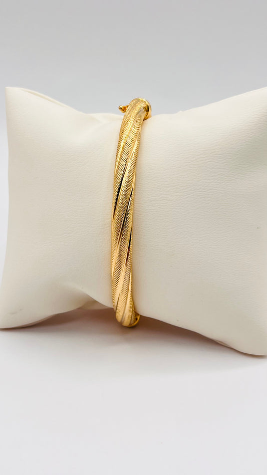 Vintage Estate 14K Solid Gold Hinged Bangle Cuff Bracelet Diamond Cut