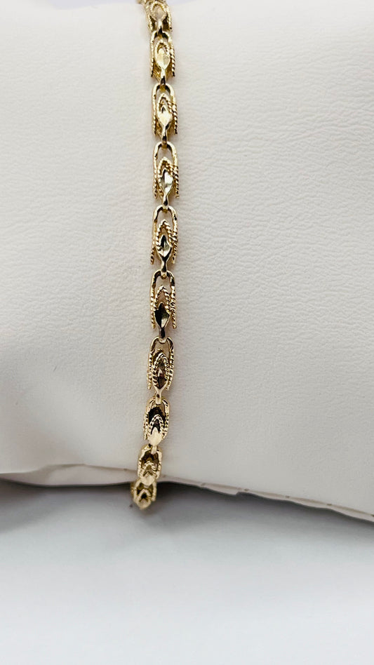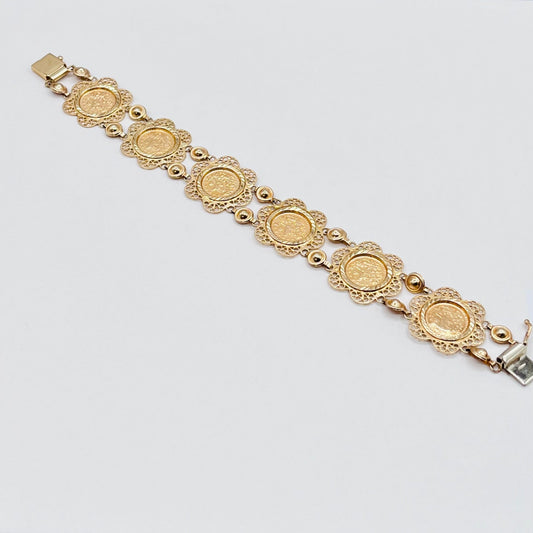 14k Solid Yellow Gold Fancy Turkish Filigree Link Chain Women’s Bracelet