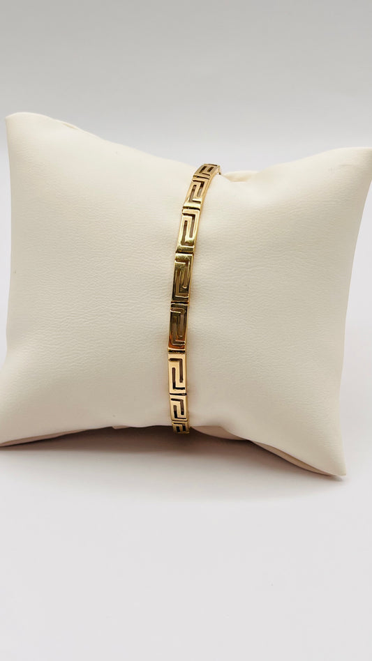 14K Solid Yellow Gold 583 Hallmark Greek Fret Design Fancy Link Bracelet
