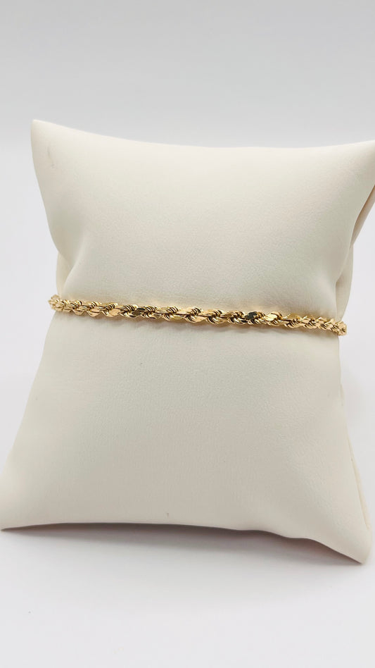14K Solid Yellow Gold Twisted Cable Rope Chain Bracelet Clasp and Safety Lock