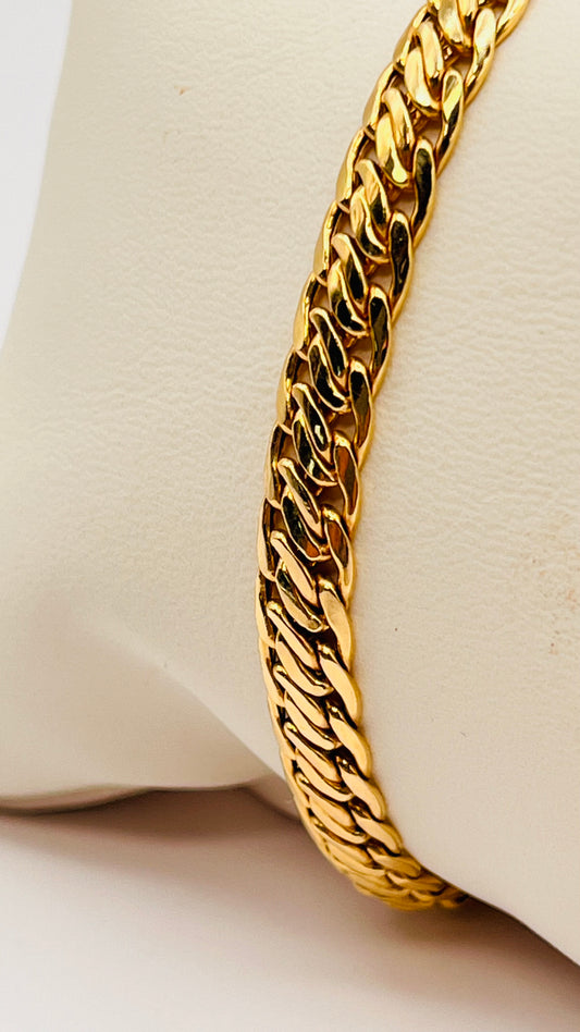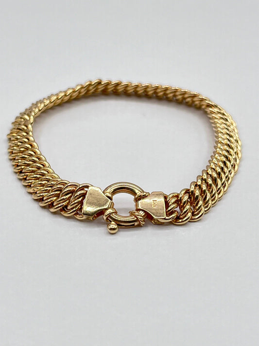14K Authentic Solid Yellow Gold Braided Double Oval Links Chain Bracelet