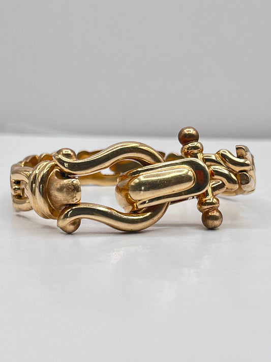 14K Solid Gold Fancy Link Vintage Chain Bracelet With Belt Buckle Looking Clasp