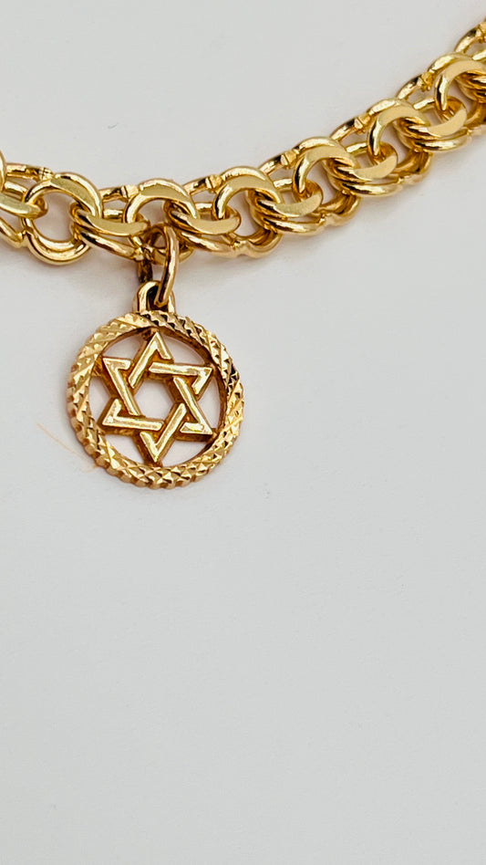 14K Solid Gold Jewish Charms Bracelet Torah Book 10 Commandment Star Of David Chai