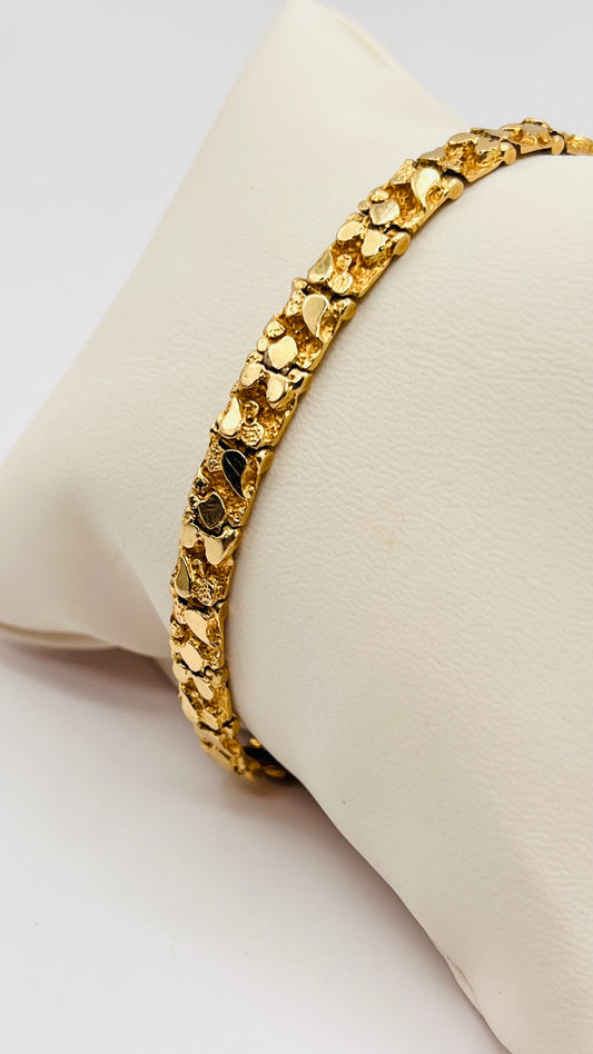 Vintage Gorgeous 14K Solid Gold Textured Nugget Bars Links Tennis Bracelet