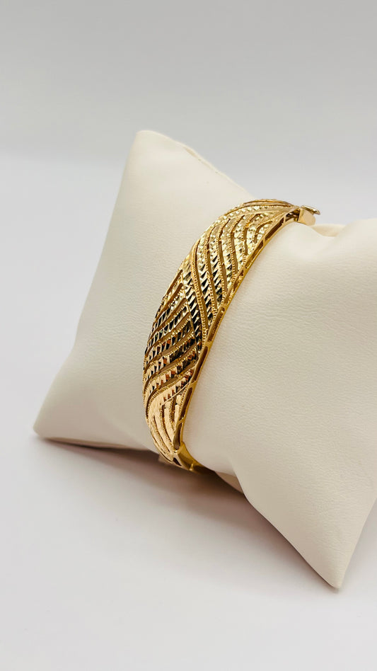 14K Authentic Solid Yellow Gold Vintage Filigree Open Work Wide Bracelet