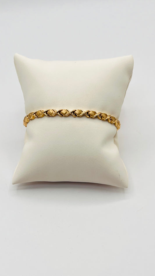 Real 14K Solid Gold XO Hugs Kisses Links Tennis Bracelet Brushed Polished Italy