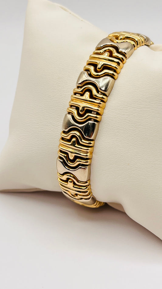 Vintage Rare Estate 14K Solid Gold Parentesi Style Two Color Cuff Fancy Bracelet Italy