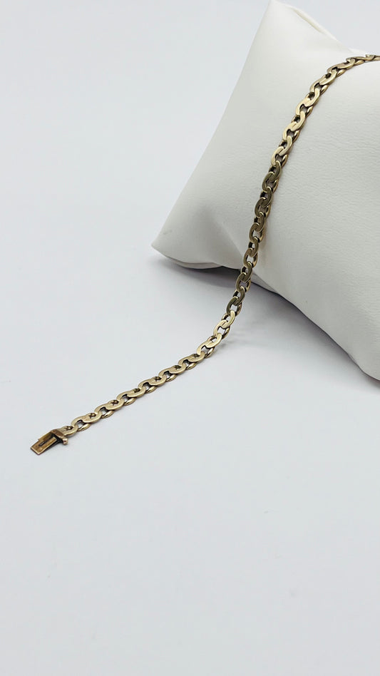 14K Solid Yellow Gold Fancy Flat Curb Link Chain Bracelet