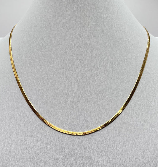 14K Solid Gold Herringbone Chain Necklace Made In Italy