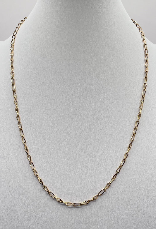 14K Solid Gold Twisted Oval Links Paper Clip Linked Style Chain Necklace