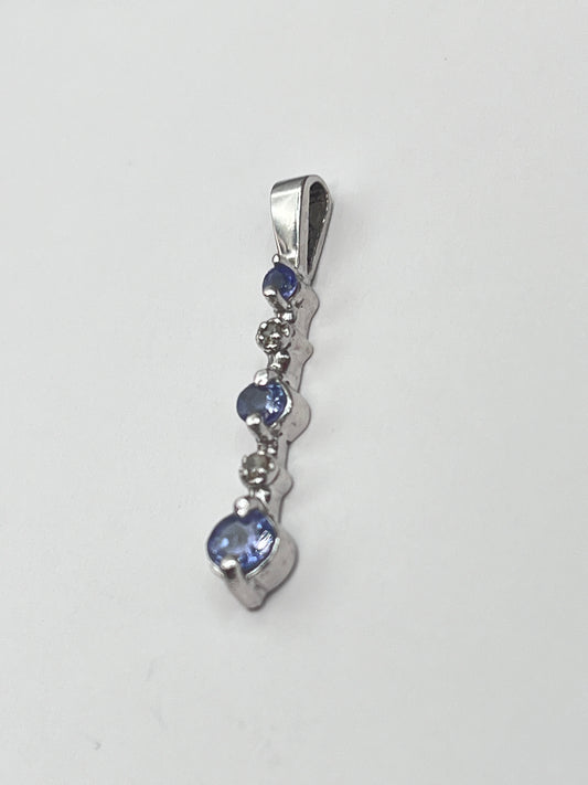 10K White Gold Tanzanite Diamonds Five Stones Stick Pendant