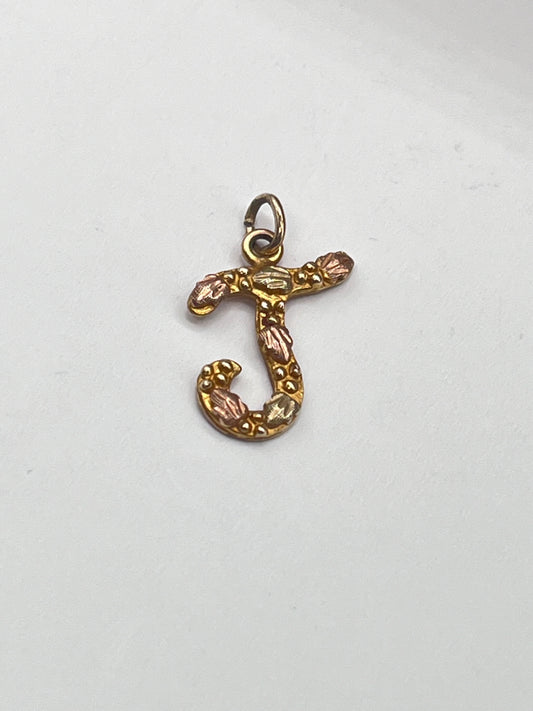 F.L.Thorpe Black Hills 10K Solid Gold Initial Cursive Letter J Pendant Vintage
