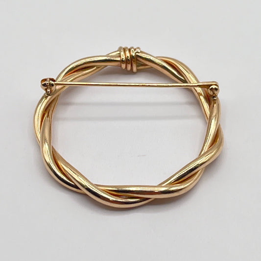 14K Solid Gold Pin Brooch Circle Twisted Cable Rope Vintage