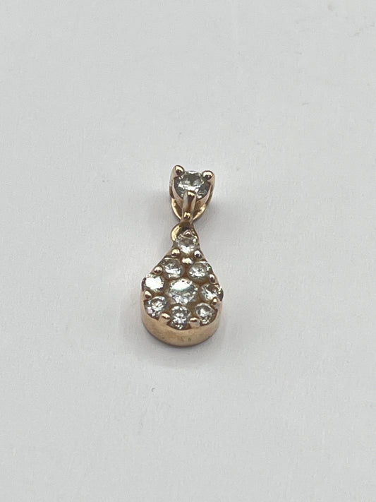 14K Solid Gold Diamonds Pendant Dangle Teardrop Shape Vintage