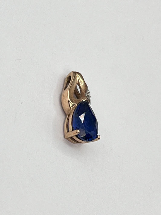 Vintage 10K Solid Gold Blue Sapphire Diamonds Pear Teardrop Pendant