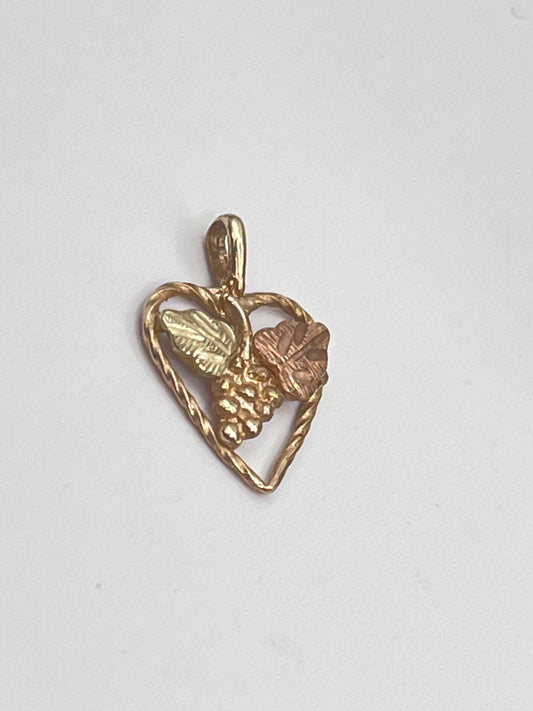 Vintage 10K Solid Gold Tri Colored Heart Leaf Grape Vine Pendant
