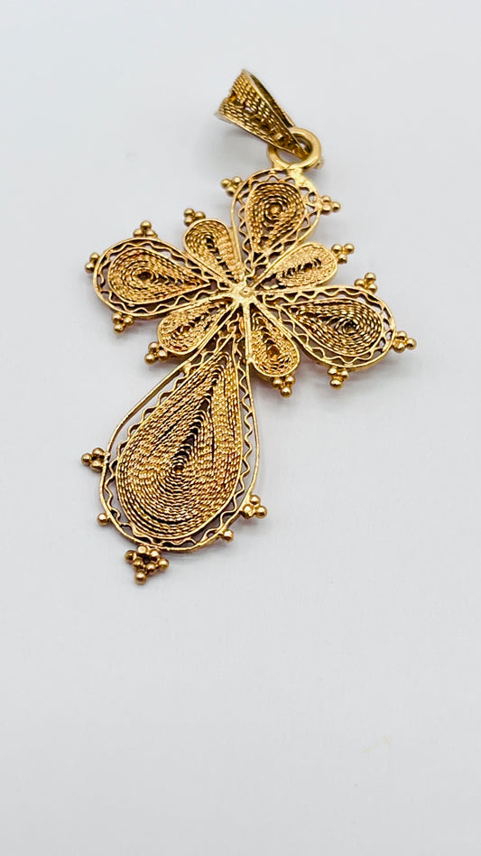 Antique Victorian 18K Solid Gold Religious Cross Crucifix Filigree Pendant