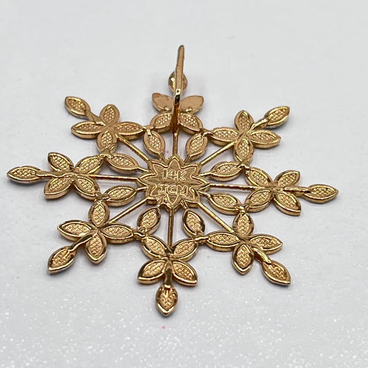 JCM Jacmel Jewelry 14K Two Colors White Yellow Solid Gold Diamond Cut Flower Snowflake Pendant