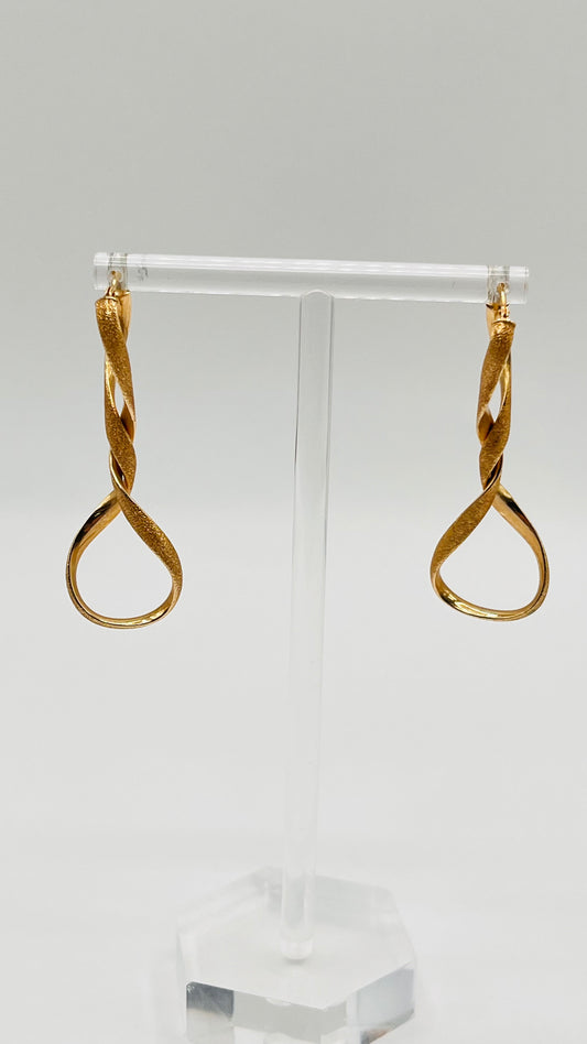Rare 14K Yellow Sand Blasted Polished Gold Twisted Hoop Dangle Earrings Italy