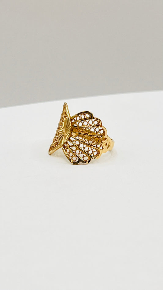 Vintage ARR Designer 14K Solid Gold Filigree Butterfly Diamond Cut Ring