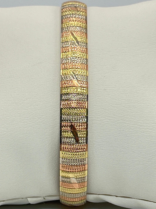 14K Tri Colored Authentic Solid Gold Vintage Striped Design Tennis Bracelet