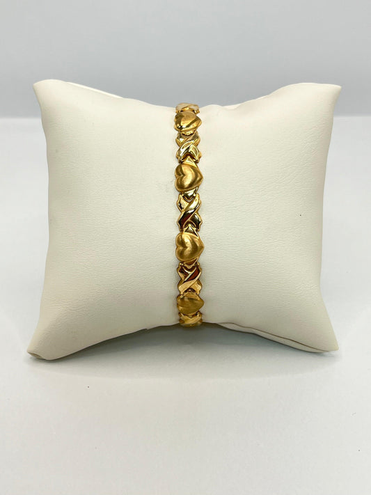 10K Authentic Solid Yellow Gold Hearts Linked XOXO Style Tennis Bracelet
