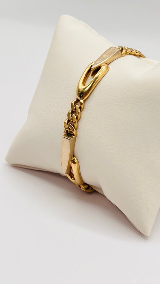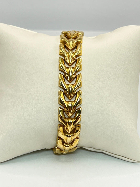 Vintage Unique 14K Solid Yellow Gold Italian Fancy Link Chunky Bracelet Lobster Clasp