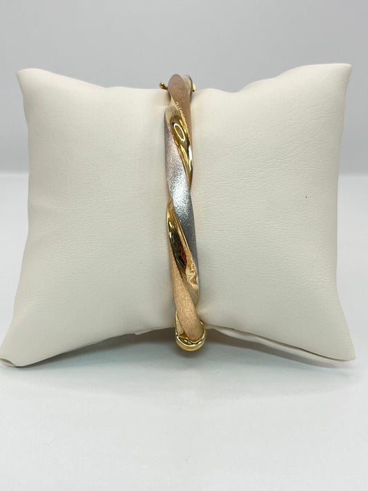 14K Authentic Solid Gold Tri Colors Twisted Hollow Hinged Cuff Bangle Bracelet