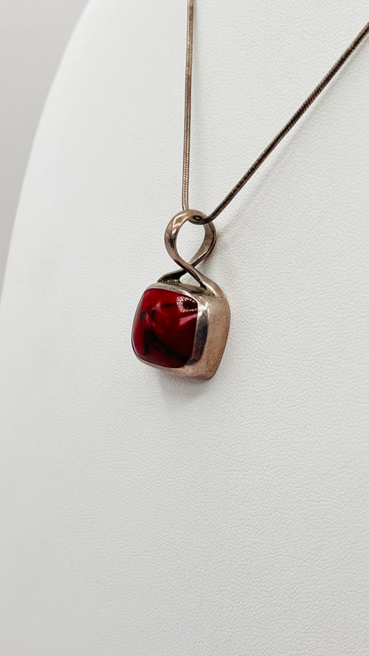 Mexico 925 Sterling Silver Pretty Red Turquoise Square Pendant