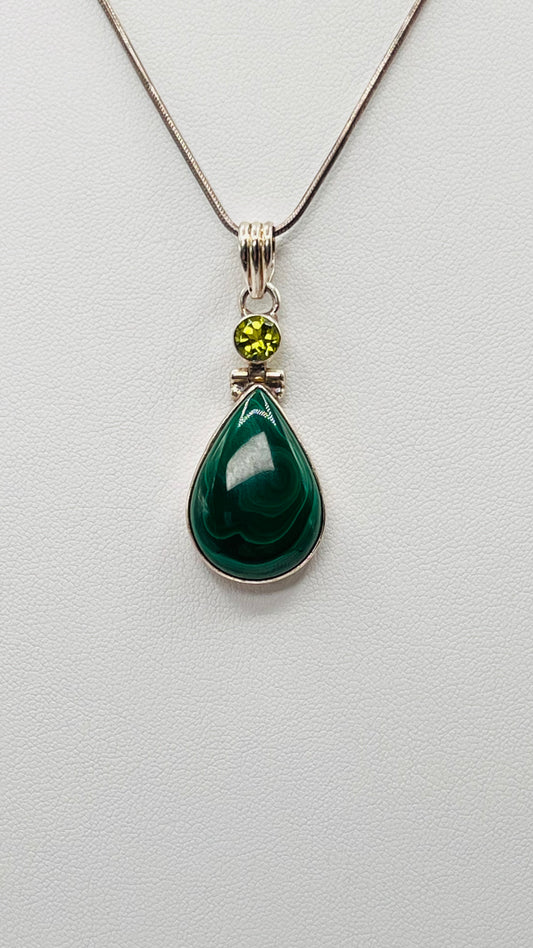 Elegant 925 Sterling Silver Green Teardrop Malachite Jadeite Pendant