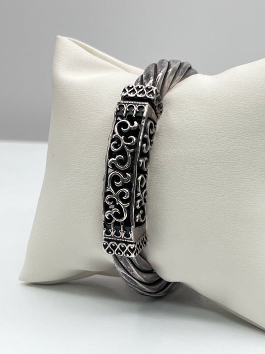 Sterling Silver 925 Vintage Estate Twisted Cable Rope Hinged Cuff Heavy Bracelet