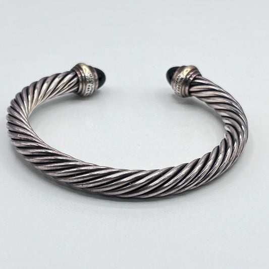David Yurman 925 Sterling Silver & 14K Yellow Gold 585 Classic Cable Cuff Bracelet With Black Onyx Stone Accents