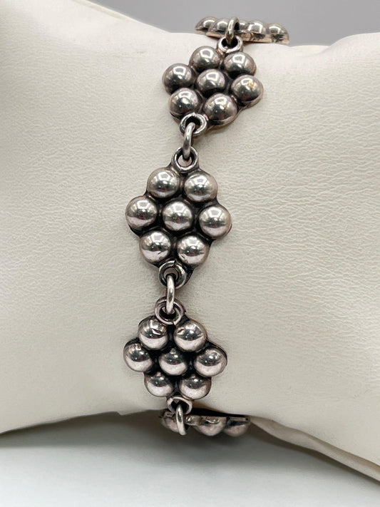 Sterling Silver 925 Vintage 1950s Taxco Mexico Linked Flowers Tennis Bracelet