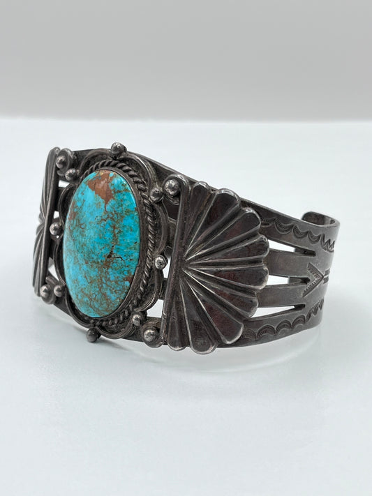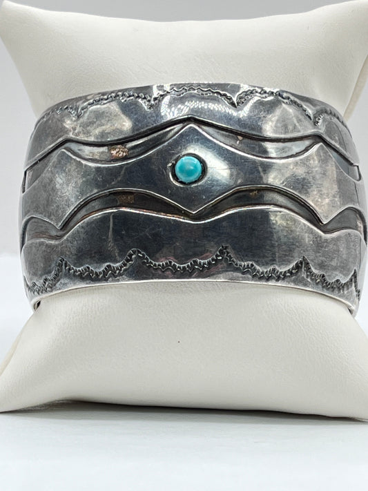 Vintage Native American Navajo Style Sterling Silver Turquoise Cabochon Cuff Bracelet