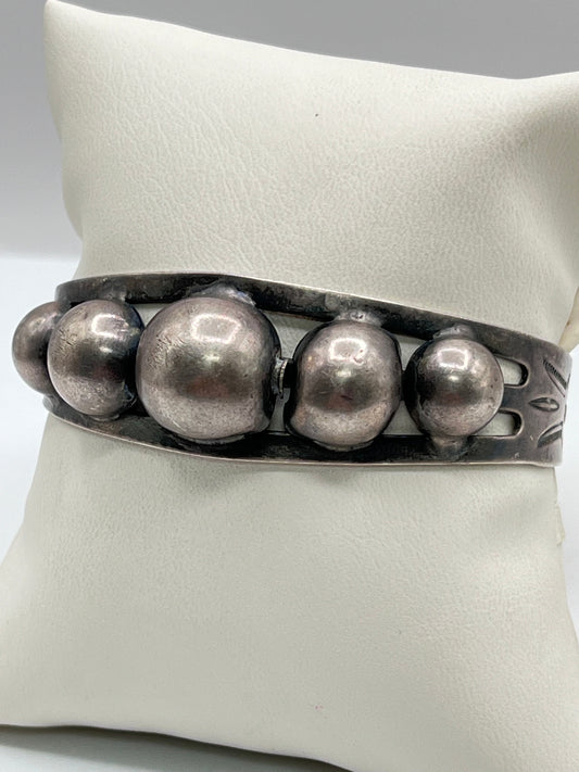 Vintage Native American Sterling Silver Cuff Bracelet No Stones 5 Silver Beads