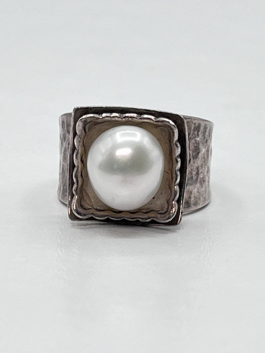 Vintage Silpada 925 Sterling Silver Squares With Ivory White Pearl Ring