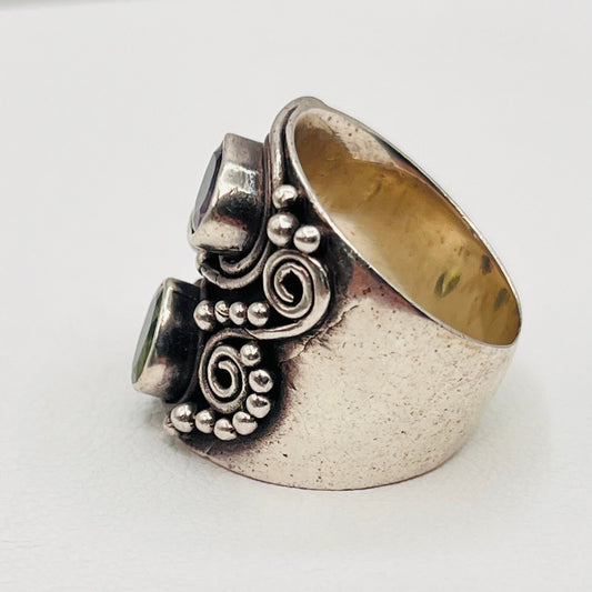 Vintage Cluster Signet 925 Sterling Silver Amethyst Emerald Tourmaline Multi Stones Chunky Ring