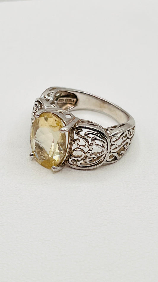 Vintage Designer BBJ 925 Sterling Silver Wedding Ring Ivory Clear Quartz Stone