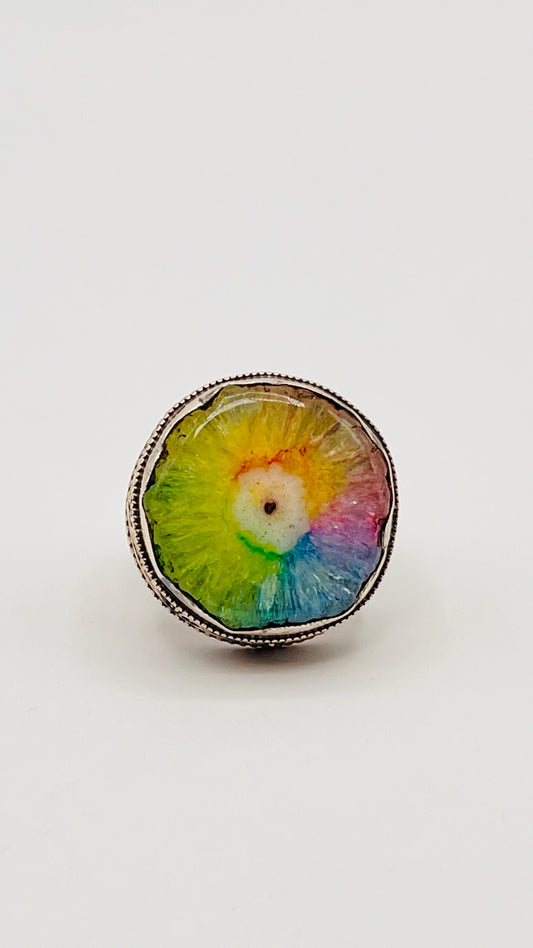 Handmade 925 Sterling Silver Rainbow Solar Quartz Druzy Multi Color Ring