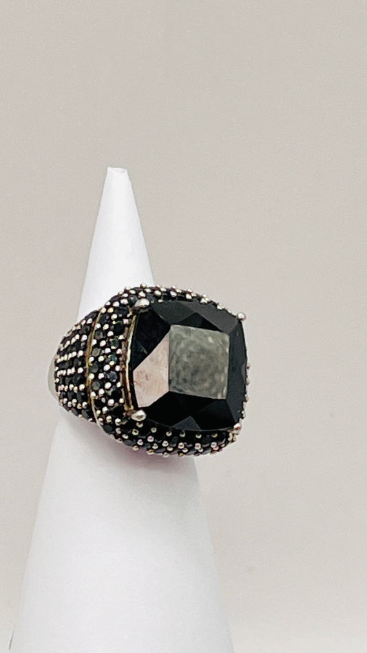 Vintage SST Designer 925 Sterling Silver Black Tourmaline Chunky Cocktail Ring