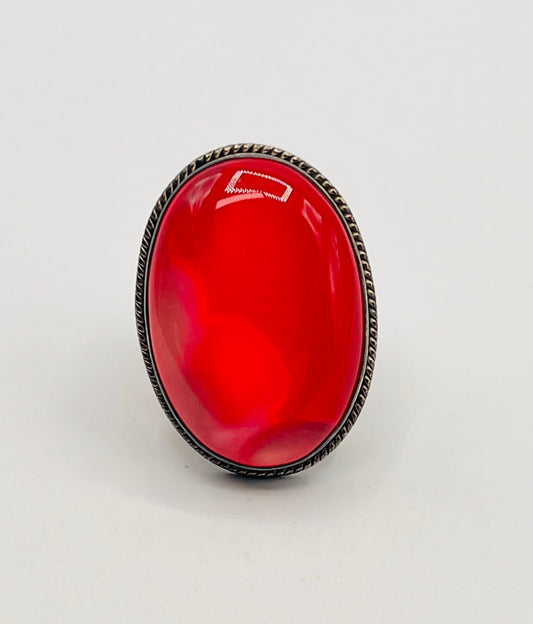Vintage Pink Jade Cabochon Oval 925 Sterling Silver Elegant Chunky Ring